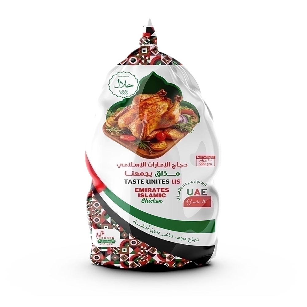 Emirates Islamic Chicken, frozen and hand-slaughtered to the highest halal standards. Produced in UAE farms, it's the ideal choice for preparing authentic family meals.